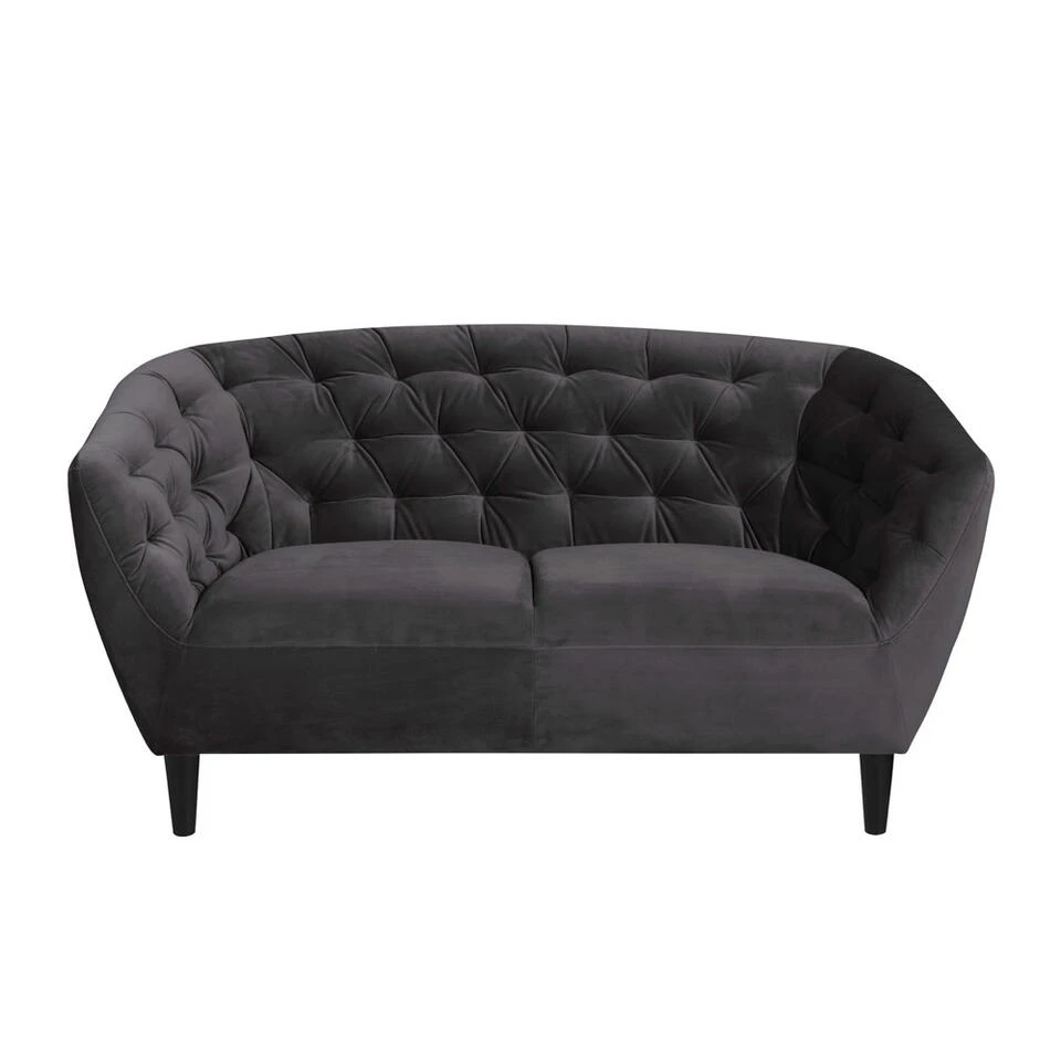 Dit bankje is bekleed met donkergrijze velvet stof en heeft een echte retro look.