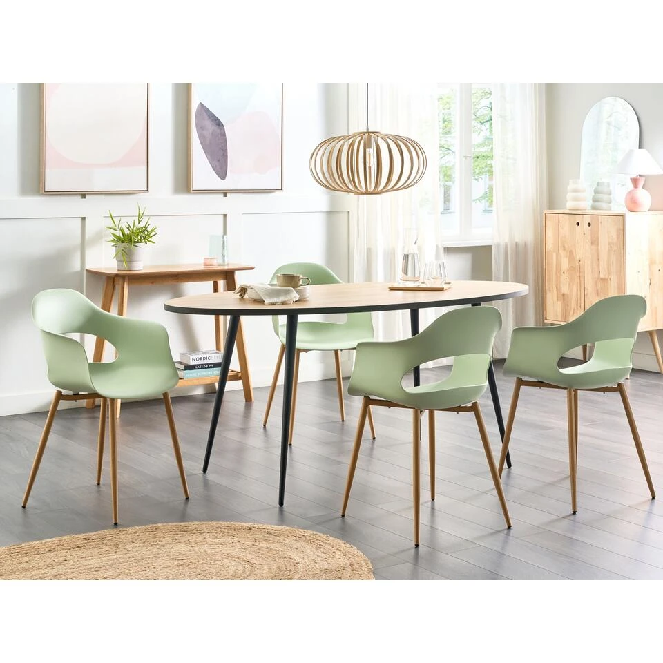 Stijlvolle eetkamerstoelen in een set van 2. Als je droomt van een moderne eetkamer met een vleugje Scandinavische stijl, dan zijn deze stoelen de juiste keuze. Ze zijn ook geschikt voor een ruime keuken of woonkamer en staan geweldig aan een vierkante tafel en vormen zo een ontbijthoek voor jou en je wederhelft. Het lichaam van sterk plastic maakt de stoel duurzaam en zal lang boeien met zijn groene kleur, en de metalen poten met een afwerking die hout imiteert verrijken hem met een minimalistisch accent.