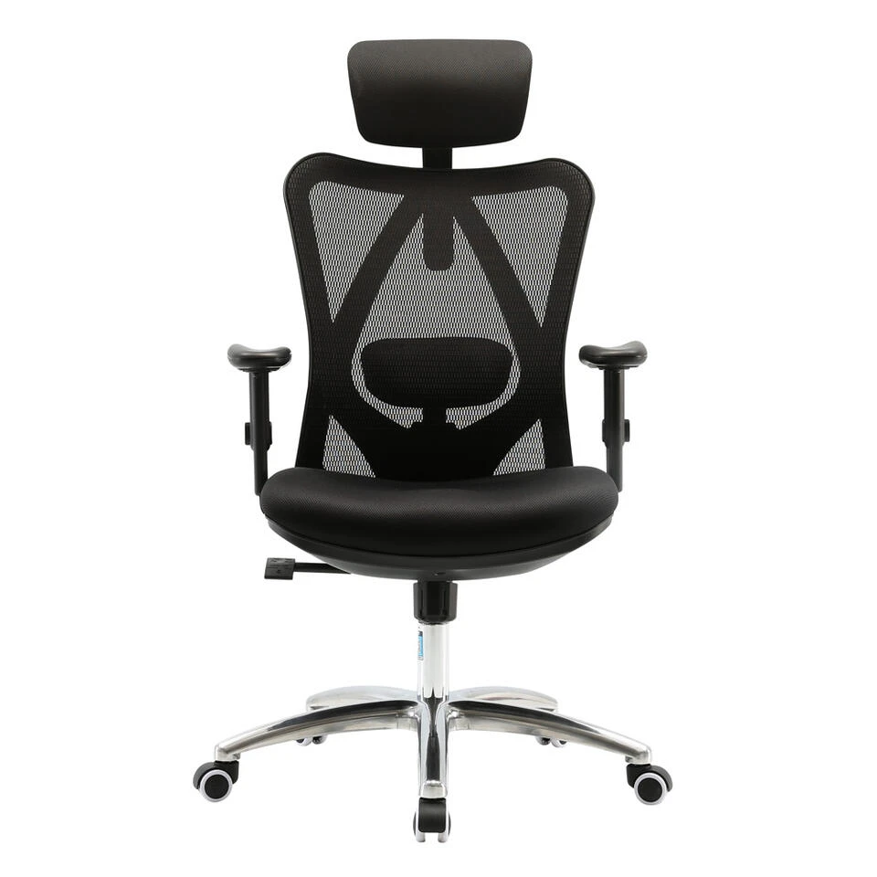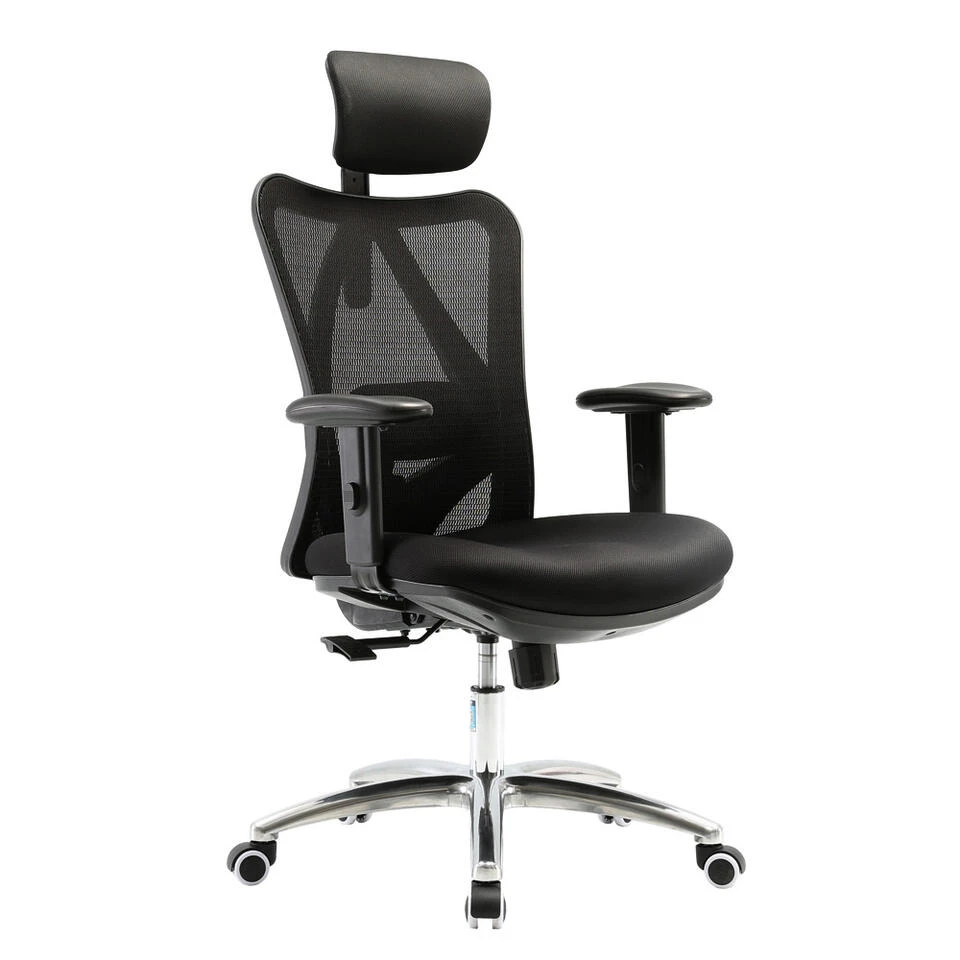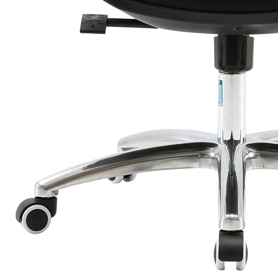 De bureaustoel is geschikt voor lange en kleine mensen. De zithoogte is namelijk traploos verstelbaar middels een gasveer die je kunt bedienen met de hendel onder de zitting. Daarnaast is de rugleuning kantelbaar, met dezelfde hendel, om een meer ontspannen houding aan te kunnen nemen. Deze kanteling is instelbaar op basis van lichaamsgewicht met behulp van de draaiknop onder de zitting. De armleuningen kunnen ook in hoogte versteld worden. De hoofd- en verstelbare lendensteun geven extra comfort tijdens een lange werkdag. Voor optimale wendbaarheid is de stoel voorzien van een 360° draaibare, aluminium stervoet met universele wieltjes.Â