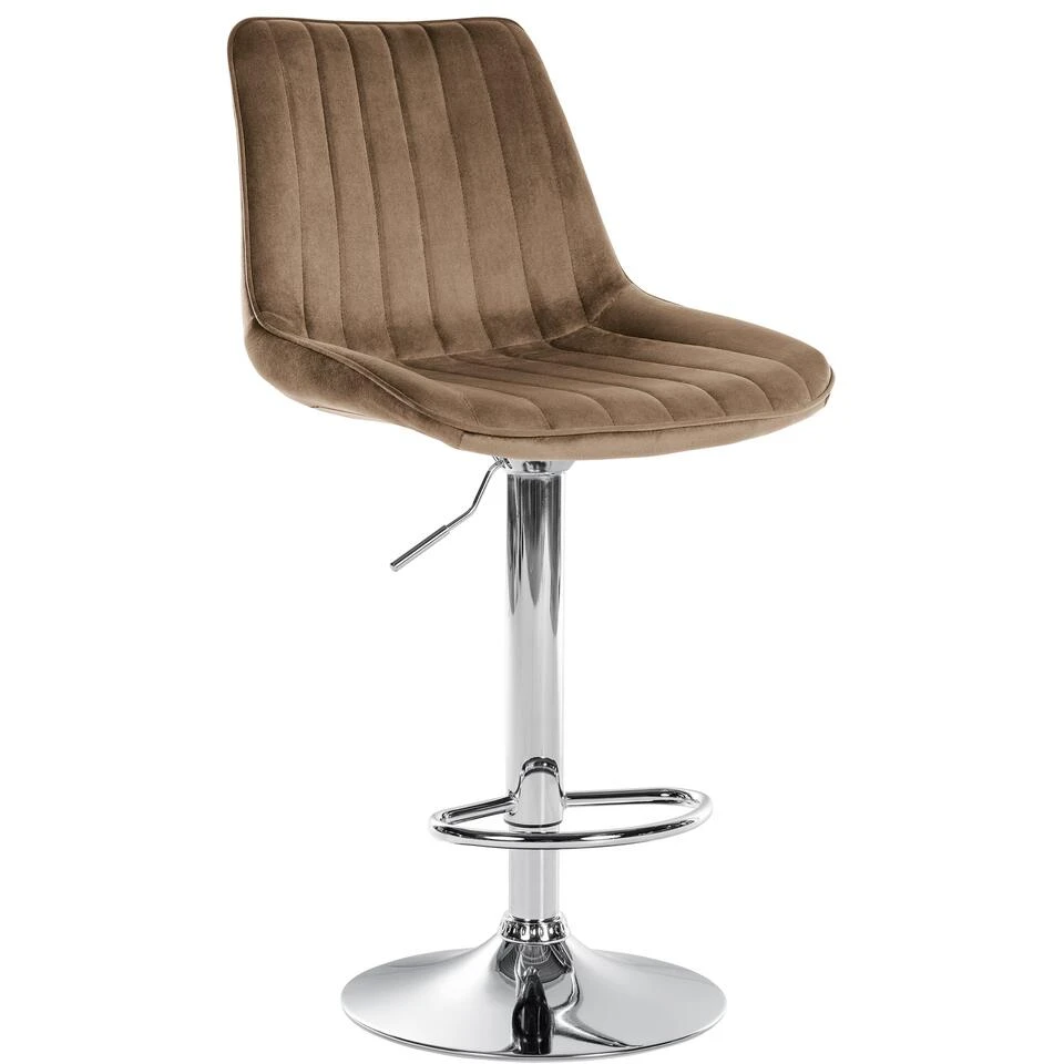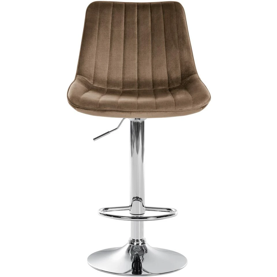Deze moderne barkruk wordt gekenmerkt door zijn tijdloos chique ontwerp. De mooi gevormde zitting belooft een fantastische zitervaring, want de gevoerde rugleuning geeft uw rug de nodige ondersteuning om urenlang comfortabel te zitten. De zitting is gemaakt van een onderhoudsvriendelijke fluwelen bekleding en het metalen frame met zijn trompetvoet biedt een zeer hoge stabiliteit. Dankzij de vrij te kiezen kleurencombinaties is voor elke woonsfeer de juiste barkruk te vinden. De gebogen voetsteun laat uw voeten niet hangen. De hoogte van de barkruk is traploos instelbaar door middel van een gasveer en de zitting is 360° draaibaar, waardoor hij ideaal is voor elke bar.