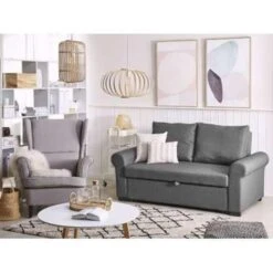 Deze bank heeft een landelijke en stoere look en is taupe van kleur. Deze kleur straalt rust en warmte uit.