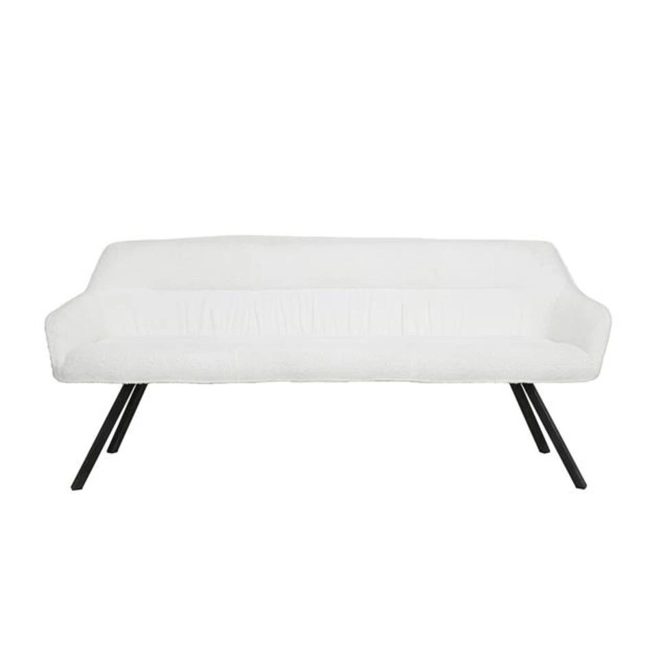 Deze eigentijdse eetkamerbank is uitgevoerd in bouclé met een metalen frame. De bank heeft een zeer comfortabele zit. De bank heeft een bijpassende eetkamerstoel.