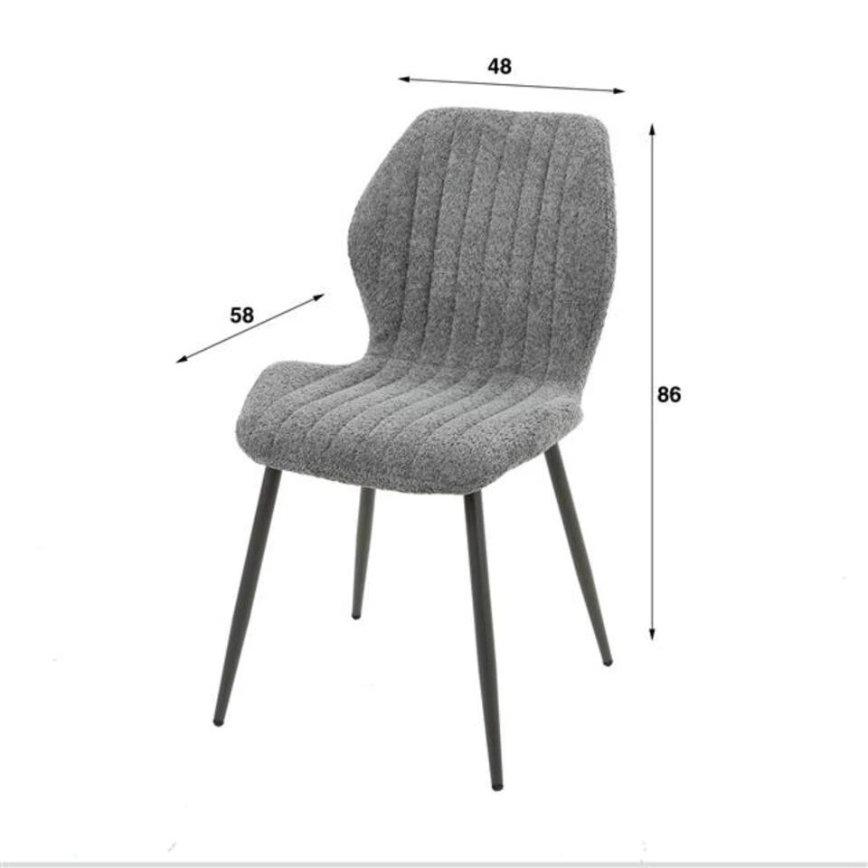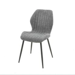 Deze trendy eetkamerstoel is uitgevoerd in bouclé met een metalen frame. De stoel zit erg comfortabel, dus een trendy stoel met een hoog comfort! De stoel is in verschillende kleuren uitgevoerd, namelijk grijs, wit en een zandkleur.