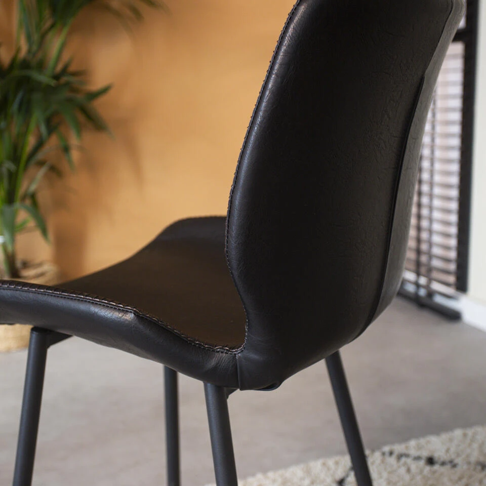 Het frame van de Beau barkruk is gemaakt van zwart gepoedercoat staal, wat in combinatie met de PU kunstleren zitting zorgt voor een modern industriële uitstraling. Door de voetsteun kan je op deze stoel heerlijk tafelen. Onder dit product zitten vloerdoppen voor het beschermen van de vloer.