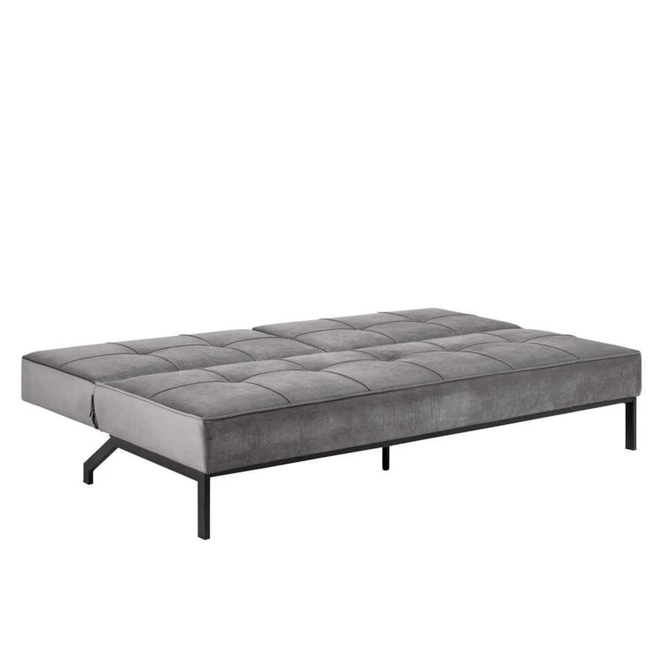 Slaapbank Linz is bekleed met donkergrijs fluweel en wordt gekenmerkt door een Scandinavische look. Met deze handige slaapbank heb je in een handomdraai een extra slaapplek in je woonkamer of slaapkamer. Het gecapitonneerde fluweel geeft de bank een elegante uitstraling. Zodra het tijd wordt om te slapen laat je de rugleuningen zakken. Ideaal te gebruiken als logeerbed maar op de studentenkamer doet deze bank het ook goed. Deze slaapbank heeft twee, in delen neerklapbare en verstelbare rugleuningen zodat, wanneer nodig, je maar een enkele leuning naar beneden kunt klappen! Dat maakt deze slaapbank extra handig!