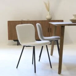 Giga Meubel Eetkamerstoel Grijs – Chenille Stof – Stoel Creston